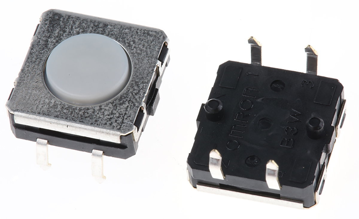 This is Plunger Tact Switch SPST-NO 50 mA @ 24 V dc 0.75mm manufactured by Omron. The manufacturer part number is B3W-4000. It has a 1.96 n of operating force. The actuator is a 0.75mm long. The given dimensions of the product include 12 x 12 x 4.3mm. The product is available in through hole configuration. Whereas, the minimum operating temperature of the product is -25°c. In addition, the height is 4.3mm. Furthermore, the product is 12mm wide. Its accurate length is 12mm. The product carries plunger actuator. The product also provide mechanical stability with 3000000operations. It has a maximum operating temperature of +70°c. The terminal is a through hole type.