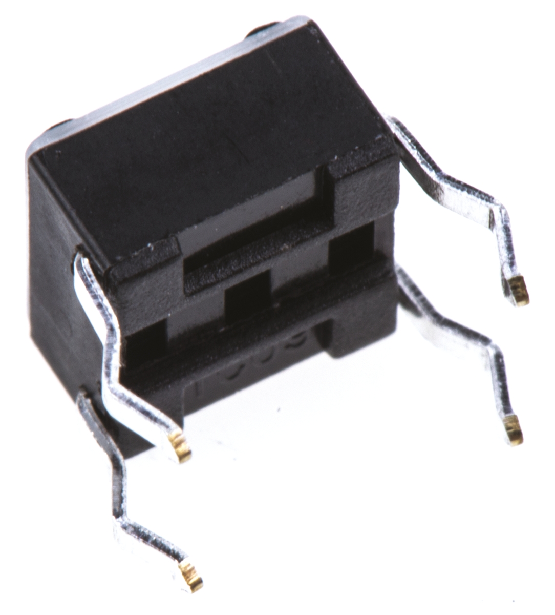 This is Black Button Tactile Switch SPST 50 mA @ 24 V dc 0.7mm manufactured by TE Connectivity. The manufacturer part number is 1825910-2. It has a 1.6 n of operating force. The given dimensions of the product include 5.99 x 5.99 x 7.8mm. Moreover, the product has a nominal 24v dc voltage rating. Whereas, the minimum operating temperature of the product is -35°c. In addition, the height is 7.8mm. Furthermore, the product is 5.99mm wide. Its accurate length is 6.99mm. The product carries button actuator. The actuator is a 0.7mm long. The product also provide mechanical stability with 100000operations. It has a maximum operating temperature of +85°c. The terminal is a through hole type. The product is made from sturdy silver over nickel plated copper alloy (stationary)' silver plated copper alloy (movable) materials.