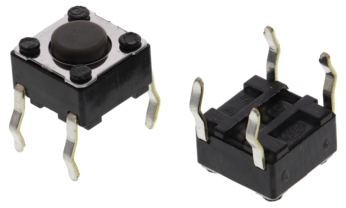 This is Grey Stem Tactile Switch Single Pole Single Throw (SPST) 50 mA @ 12 V dc 4.3mm manufactured by Alps Alpine. The manufacturer part number is SKHHALA010. It has a 1.57 n of operating force. The given dimensions of the product include 6 x 6 x 4.3mm. The product is available in surface mount configuration. Moreover, the product has a nominal 12v dc voltage rating. Whereas, the minimum operating temperature of the product is -30°c. In addition, the height is 4.3mm. Furthermore, the product is 6mm wide. Its accurate length is 6mm. The product carries stem actuator. The actuator is a 4.3mm long. The product also provide mechanical stability with 500000cycles. It has a maximum operating temperature of +85°c. The terminal is a through hole type.