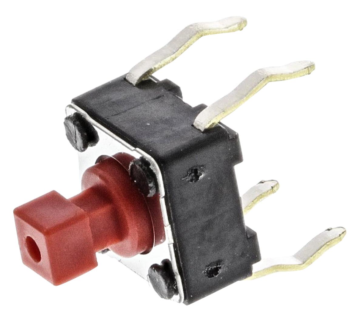 This is Red Stem Tactile Switch Single Pole Single Throw (SPST) 50 mA @ 12 V dc 7.3mm manufactured by Alps Alpine. The manufacturer part number is SKHHDGA010. It has a 2.55 n of operating force. The actuator is a 7.3mm long. Whereas, the minimum operating temperature of the product is -30°c. The product carries stem actuator. The product also provide mechanical stability with 200000циклы. It has a maximum operating temperature of +85°c. The terminal is a through hole type.