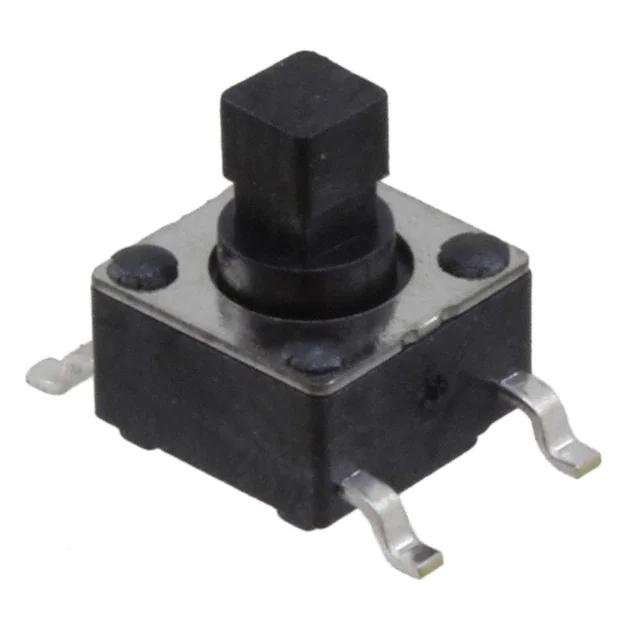 This is manufactured by E-Switch. The manufacturer part number is TL3301TF160QGTR. It has a 160gf of operating force. It is assigned with possible HTSUS value of 8536.50.9031. The product is rohs3 compliant. Moreover, it has gull wing terminal style. Features 7.50mm actuator vertical height off PCB. The product has -20°c ~ 70°c operating temperature range. The actuator is adjusted at top actuated. The product also provide mechanical stability with 100,000 cycles. In addition, it is reach unaffected. The given outline of the product is 6.00mm x 6.00mm. It is shipped in tape & reel (tr). It is designed as a off-mom switching function. Its typical moisture sensitivity level is 1 (unlimited). It has an integral spst-no circuit. The given contact rating of the product and its voltage includes 0.05a @ 12vdc. It has a long 11 weeks standard lead time. The product is available in surface mount configuration. The product tl3301, is a highly preferred choice for users. The product has a switching travel of 0.25mm. The product carries plunger for cap actuator. Is this product illuminated? non-illuminated. The actuator is designed from sturdy polyamide (pa), nylon material. Moreover, it corresponds to tl3301, a base product number of the product. The product is designated with the ear99 code number