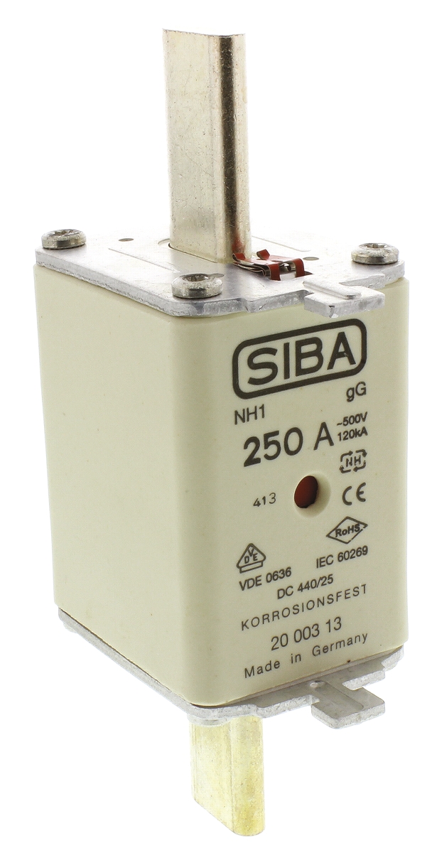 This is 250A 1 NH Centred Tag Fuse gG - gL 500V ac manufactured by SIBA. The manufacturer part number is 4184219. The product has a current rating of 250a. Moreover, the product has a nominal 500v ac voltage rating. A fuse with a nh1 size.
