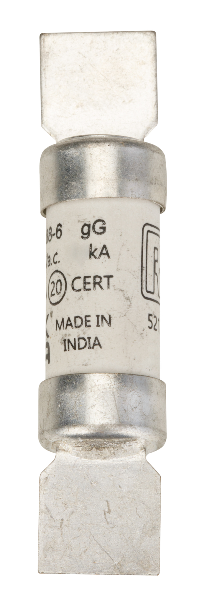 This is 6A F1 British Standard Fuse gG 550V ac HRC manufactured by RS Pro. The manufacturer part number is 521-2905. The product has a current rating of 6a. Moreover, the product has a nominal 550v ac voltage rating. A fuse with a f1 size.