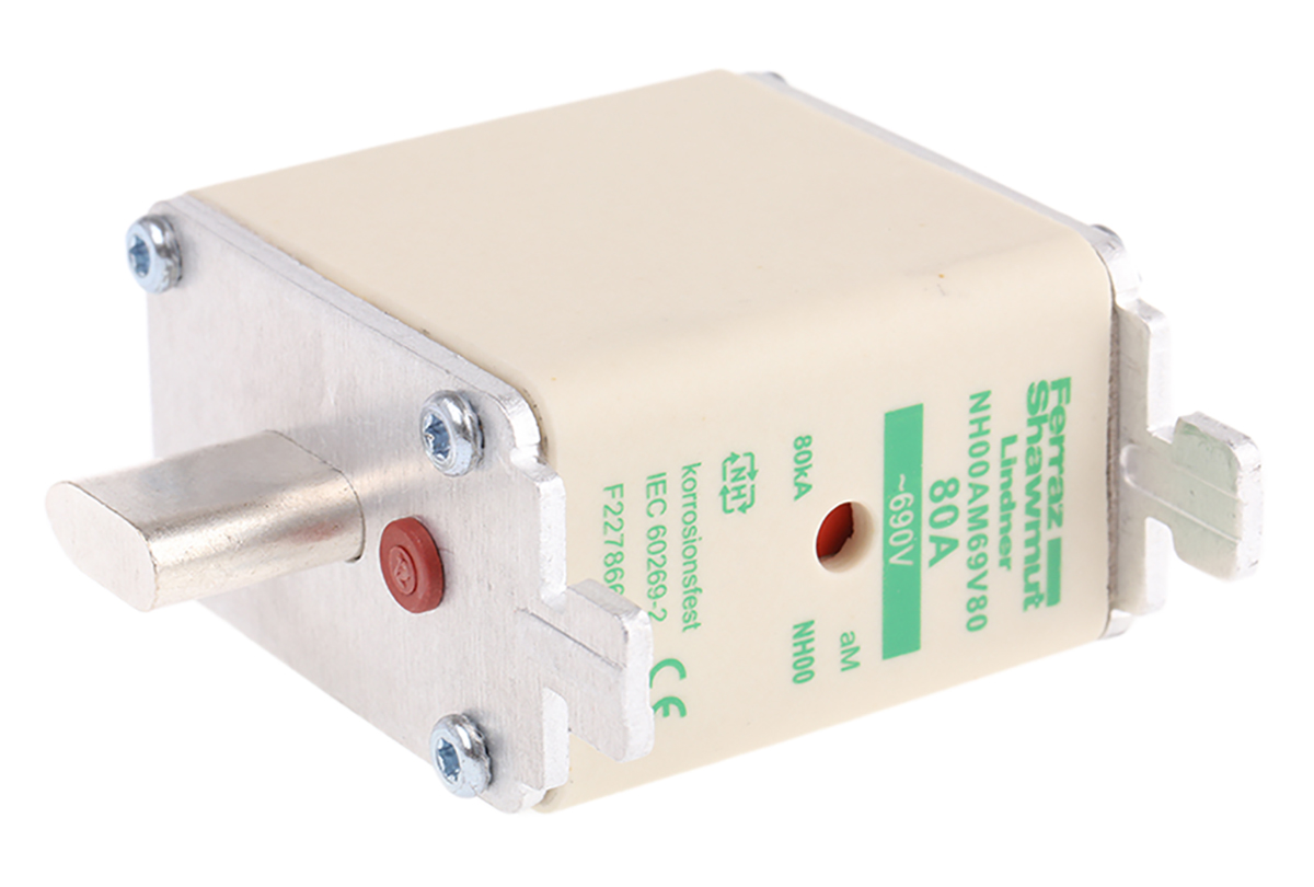 This is 80A 00 NH Centred Tag Fuse aM 690V manufactured by Mersen. The manufacturer part number is F227866. The product has a current rating of 80a. Moreover, the product has a nominal 690v voltage rating. A fuse with a nh00 size.