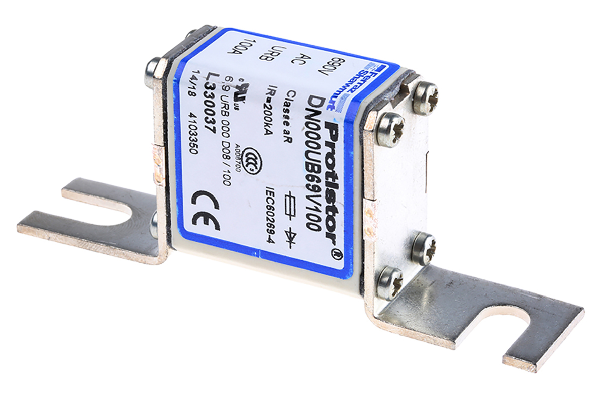 This is 100A NH FF NH Fuse aR 690V ac NH manufactured by Mersen. The manufacturer part number is L330037. The product has a current rating of 100a. Moreover, the product has a nominal 690v ac voltage rating. A fuse with a nh000 size.