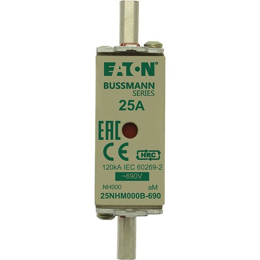 This is Cooper Bussmann 25A 000 NH Centred Tag Fuse aM 690V ac manufactured by Eaton Bussmann Series. The manufacturer part number is 25NHM000B-690. The product has a current rating of 25a. Moreover, the product has a nominal 690v ac voltage rating. The product nhm, is a highly preferred choice for users. A fuse with a 000 size.