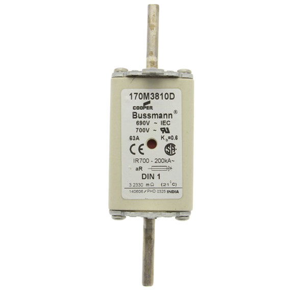 This is Cooper Bussmann 50A 1 HSDI Centred Tag Fuse aR 690V ac manufactured by Eaton Bussmann Series. The manufacturer part number is 170M3809D. The product has a current rating of 50a. Moreover, the product has a nominal 690v ac voltage rating. A fuse with a 1 size.
