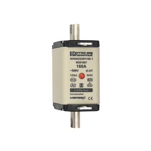 This is 160A NH Fuse NH 00 500V ac manufactured by Mersen. The manufacturer part number is W201867. The product has a current rating of 160a. A fuse with a nh 00 size. Moreover, the product has a nominal 500v ac voltage rating.