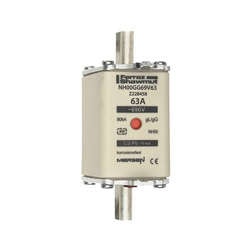 This is 63A NH Fuse NH 00 690V ac manufactured by Mersen. The manufacturer part number is Z228458. The product has a current rating of 63a. A fuse with a nh 00 size. Moreover, the product has a nominal 690v ac voltage rating.