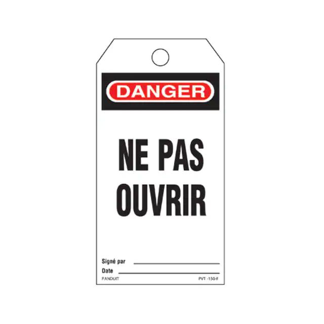 This is manufactured by Panduit Corp. The manufacturer part number is PVT-150-F. Label with a size of 5.75" l x 3.00" w (146.0mm x 76.2mm). The product is rohs3 compliant. It is assigned with possible HTSUS value of 3926.90.9985. It is shipped in bulk. It has a classic black and red legend, white background colour. The product is made from highly stable and reliable plastic. Its typical moisture sensitivity level is not applicable. The product is designated with the ear99 code number