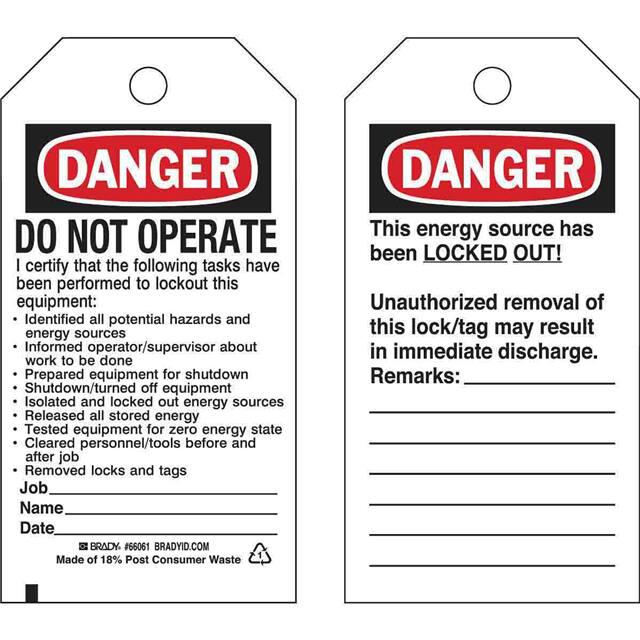 This is manufactured by Brady Corporation. The manufacturer part number is 133491. Label with a size of 5.75" l x 3.00" w (146.0mm x 76.2mm). The product is not applicable. It is shipped in bulk. It has a classic black and red legend, white background colour. The product brady®, is a highly preferred choice for users. The product is made from highly stable and reliable paper. In addition, it is reach unaffected. Its typical moisture sensitivity level is not applicable. A bespoke label is a danger. do not operate i certify that the following tasks have been performed to lock out this equipment label. The product is suitable for use with danger. It has a long 4 weeks standard lead time.