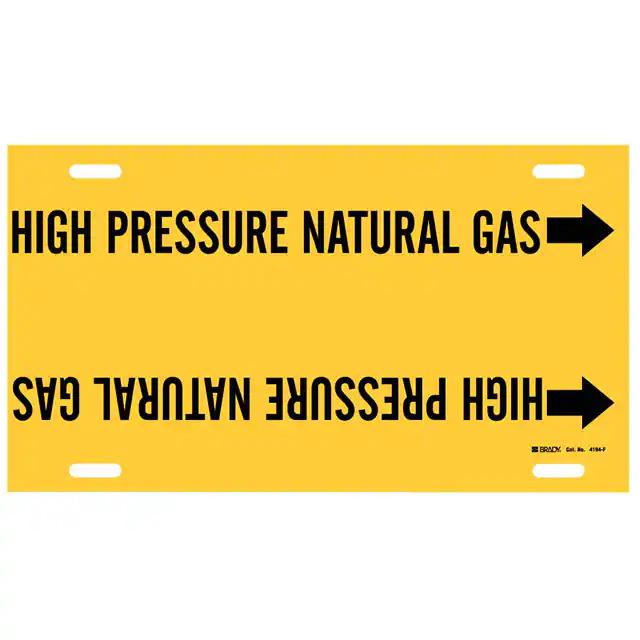 This is manufactured by Brady Corporation. The manufacturer part number is 4194-F. Label with a size of 16.00" l x 8.00" w (406.4mm x 203.2mm). The product is rohs3 compliant. It is shipped in bulk. It has a classic black legend, yellow background colour. The product brady®, is a highly preferred choice for users. The product is made from highly stable and reliable plastic. In addition, it is reach unaffected. Its typical moisture sensitivity level is not applicable. A bespoke label is a high pressure natural gas label. Moreover, it corresponds to 4194, a base product number of the product. It has a long 4 weeks standard lead time.
