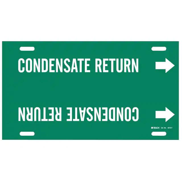 This is manufactured by Brady Corporation. The manufacturer part number is 4314-F. Label with a size of 16.00" l x 8.00" w (406.4mm x 203.2mm). The product is not applicable. It is shipped in bulk. It has a classic white legend, green background colour. The product brady®, is a highly preferred choice for users. The product is made from highly stable and reliable plastic. In addition, it is reach unaffected. Its typical moisture sensitivity level is not applicable. A bespoke label is a condensate return label. Moreover, it corresponds to 4314, a base product number of the product. It has a long 4 weeks standard lead time.