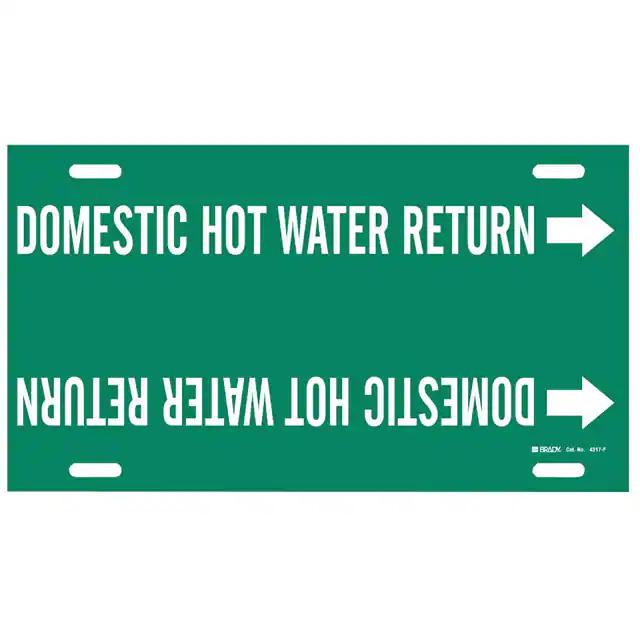 This is manufactured by Brady Corporation. The manufacturer part number is 4317-F. Label with a size of 16.00" l x 8.00" w (406.4mm x 203.2mm). The product is not applicable. It is shipped in bulk. It has a classic white legend, green background colour. The product brady®, is a highly preferred choice for users. The product is made from highly stable and reliable plastic. In addition, it is reach unaffected. Its typical moisture sensitivity level is not applicable. A bespoke label is a domestic hot water return label. Moreover, it corresponds to 4317, a base product number of the product. It has a long 4 weeks standard lead time.