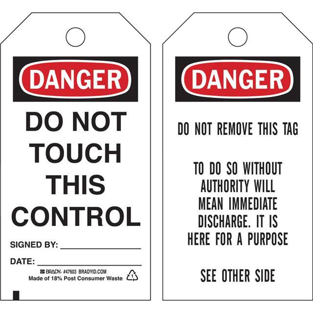 This is manufactured by Brady Corporation. The manufacturer part number is 47603. Label with a size of 5.75" l x 3.00" w (146.0mm x 76.2mm). The product is not applicable. It is shipped in bulk. It has a classic black and red legend, white background colour. The product brady®, is a highly preferred choice for users. The product is made from highly stable and reliable polyester. In addition, it is reach unaffected. Its typical moisture sensitivity level is not applicable. A bespoke label is a danger. do not touch this control signed by. date. label. The product is suitable for use with danger. It has a long 4 weeks standard lead time.