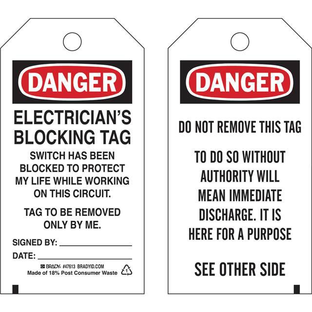 This is manufactured by Brady Corporation. The manufacturer part number is 47613. Label with a size of 5.75" l x 3.00" w (146.0mm x 76.2mm). The product is not applicable. It is shipped in bulk. It has a classic black and red legend, white background colour. The product brady®, is a highly preferred choice for users. The product is made from highly stable and reliable polyester. In addition, it is reach unaffected. Its typical moisture sensitivity level is not applicable. A bespoke label is a danger. electrician's blocking tag switch has been blocked to protect my life while working on this circuit. tag to be removed… label. The product is suitable for use with danger. It has a long 4 weeks standard lead time.