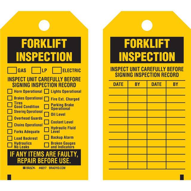 This is manufactured by Brady Corporation. The manufacturer part number is 48249. Label with a size of 5.75" l x 3.00" w (146.0mm x 76.2mm). The product is not applicable. It is shipped in bulk. It has a classic black legend, yellow background colour. The product brady®, is a highly preferred choice for users. The product is made from highly stable and reliable polyester. In addition, it is reach unaffected. Its typical moisture sensitivity level is not applicable. A bespoke label is a fork lift inspection. inspect unit carefully before signing inspection record label. It has a long 4 weeks standard lead time.