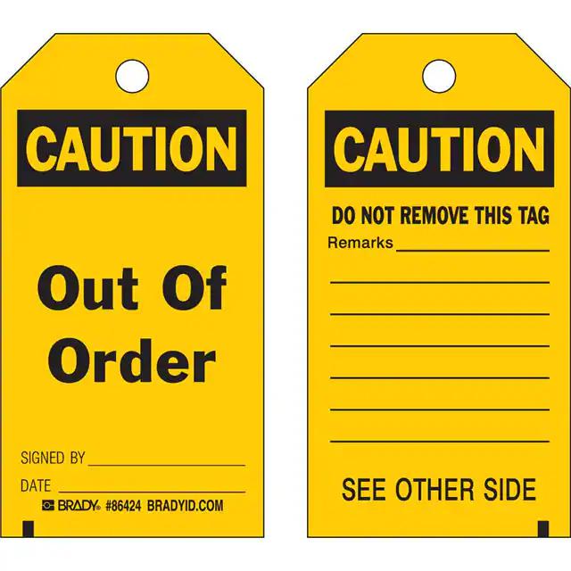 This is manufactured by Brady Corporation. The manufacturer part number is 86485. Label with a size of 7.00" l x 4.00" w (177.8mm x 101.6mm). The product is rohs3 compliant. It is shipped in bulk. It has a classic black legend, yellow background colour. The product brady®, is a highly preferred choice for users. The product is made from highly stable and reliable polyester. In addition, it is reach unaffected. Its typical moisture sensitivity level is not applicable. A bespoke label is a caution. out of order label. The product is suitable for use with caution. It has a long 4 weeks standard lead time.