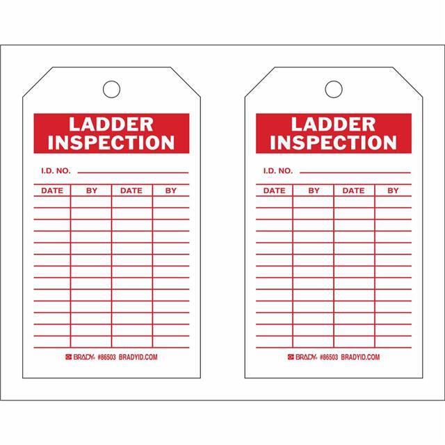 This is manufactured by Brady Corporation. The manufacturer part number is 86503. Label with a size of 7.00" l x 4.00" w (177.8mm x 101.6mm). The product is rohs3 compliant. It is shipped in bulk. It has a classic red legend, white background colour. The product brady®, is a highly preferred choice for users. The product is made from highly stable and reliable polyester. In addition, it is reach unaffected. Its typical moisture sensitivity level is not applicable. A bespoke label is a ladder inspection. i.d. no. date. by. date. by. label. It has a long 4 weeks standard lead time.