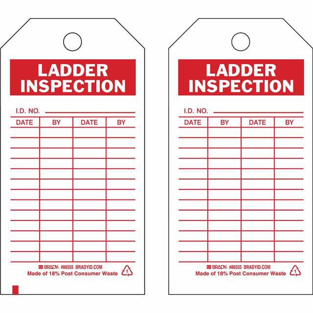 This is manufactured by Brady Corporation. The manufacturer part number is 86555. Label with a size of 5.75" l x 3.00" w (146.0mm x 76.2mm). The product is rohs3 compliant. It is shipped in bulk. It has a classic red legend, white background colour. The product brady®, is a highly preferred choice for users. The product is made from highly stable and reliable polyester. In addition, it is reach unaffected. Its typical moisture sensitivity level is not applicable. A bespoke label is a ladder inspection. i.d. no. date. by. date. by. label. It has a long 4 weeks standard lead time.