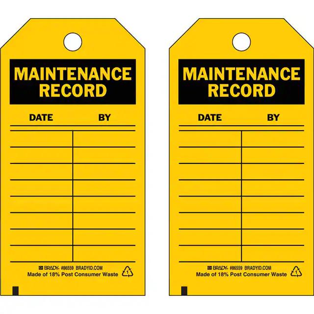 This is manufactured by Brady Corporation. The manufacturer part number is 86559. Label with a size of 5.75" l x 3.00" w (146.0mm x 76.2mm). The product is rohs3 compliant. It is shipped in bulk. It has a classic black legend, yellow background colour. The product brady®, is a highly preferred choice for users. The product is made from highly stable and reliable polyester. In addition, it is reach unaffected. Its typical moisture sensitivity level is not applicable. A bespoke label is a maintenance record. date. by. label. It has a long 4 weeks standard lead time.