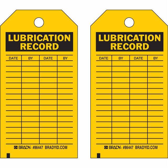 This is manufactured by Brady Corporation. The manufacturer part number is 86561. Label with a size of 5.75" l x 3.00" w (146.0mm x 76.2mm). The product is not applicable. It is shipped in bulk. It has a classic black legend, yellow background colour. The product brady®, is a highly preferred choice for users. The product is made from highly stable and reliable polyester. In addition, it is reach unaffected. Its typical moisture sensitivity level is not applicable. A bespoke label is a lubrication record. date. by. date. by. label. It has a long 4 weeks standard lead time.