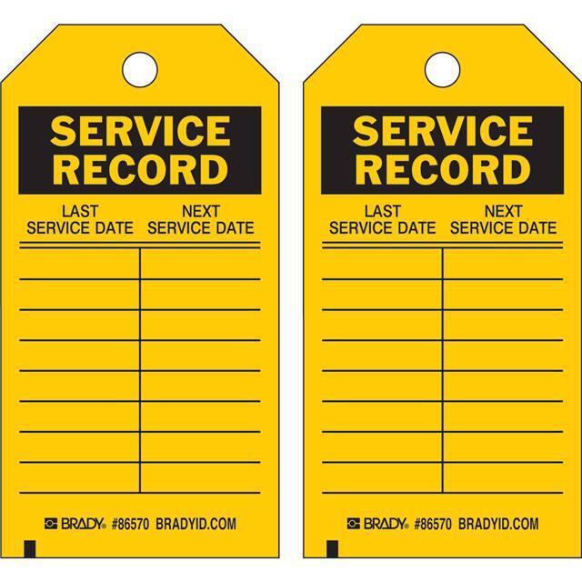 This is manufactured by Brady Corporation. The manufacturer part number is 86570. Label with a size of 5.75" l x 3.00" w (146.0mm x 76.2mm). The product is not applicable. It is shipped in bulk. It has a classic black legend, yellow background colour. The product brady®, is a highly preferred choice for users. The product is made from highly stable and reliable polyester. In addition, it is reach unaffected. Its typical moisture sensitivity level is not applicable. A bespoke label is a service record. last service date. next service date. label. It has a long 4 weeks standard lead time.