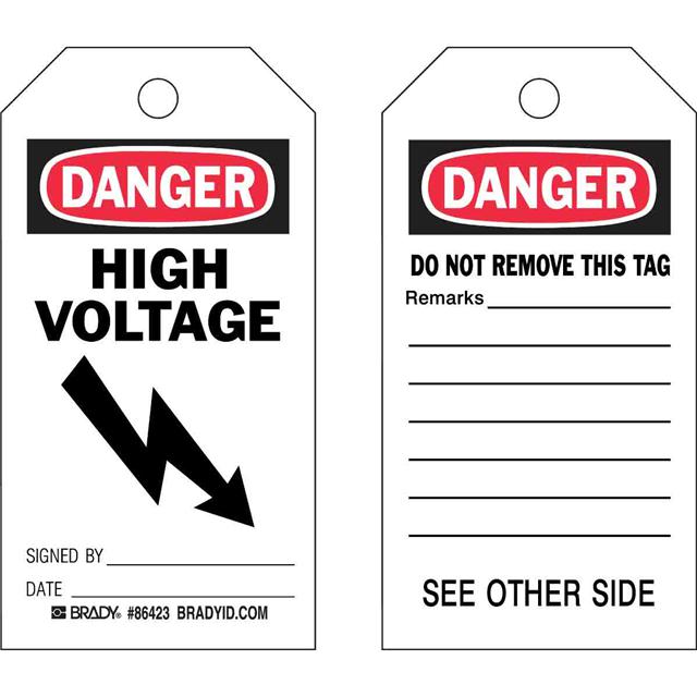This is manufactured by Brady Corporation. The manufacturer part number is 86597. Label with a size of 7.00" l x 4.00" w (177.8mm x 101.6mm). The product is rohs3 compliant. It is shipped in bulk. It has a classic black and red legend, white background colour. The product brady®, is a highly preferred choice for users. The product is made from highly stable and reliable polyester. In addition, it is reach unaffected. Its typical moisture sensitivity level is not applicable. A bespoke label is a danger. high voltage signed by. date. label. The product is suitable for use with danger. It has a long 4 weeks standard lead time.