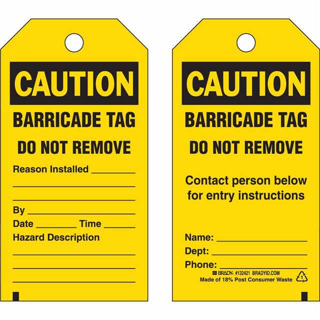 This is manufactured by Brady Corporation. The manufacturer part number is 132421. Label with a size of 5.75" l x 3.00" w (146.0mm x 76.2mm). The product is not applicable. It is shipped in bulk. It has a classic black legend, yellow background colour. The product brady®, is a highly preferred choice for users. The product is made from highly stable and reliable polyester. In addition, it is reach unaffected. Its typical moisture sensitivity level is not applicable. A bespoke label is a caution. barricade tag do not remove reason installed. by. date. time. hazard description. label. The product is suitable for use with caution. It has a long 4 weeks standard lead time.