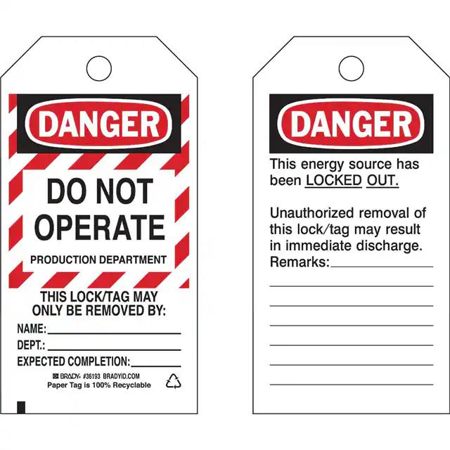 This is manufactured by Brady Corporation. The manufacturer part number is 36193. Label with a size of 5.75" l x 3.00" w (146.0mm x 76.2mm). The product is rohs3 compliant. It is shipped in bulk. It has a classic black and red legend, white background colour. The product brady®, is a highly preferred choice for users. The product is made from highly stable and reliable paper. In addition, it is reach unaffected. Its typical moisture sensitivity level is not applicable. A bespoke label is a danger. do not operate label. The product is suitable for use with danger. It has a long 4 weeks standard lead time.