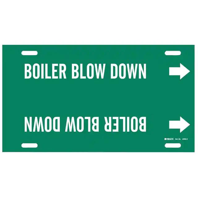 This is manufactured by Brady Corporation. The manufacturer part number is 4298-H. Label with a size of 32.00" l x 10.00" w (812.8mm x 254.0mm). The product is rohs3 compliant. It is shipped in bulk. It has a classic white legend, green background colour. The product brady®, is a highly preferred choice for users. The product is made from highly stable and reliable plastic. In addition, it is reach unaffected. Its typical moisture sensitivity level is not applicable. A bespoke label is a boiler blow down label. Moreover, it corresponds to 4298, a base product number of the product. It has a long 4 weeks standard lead time.