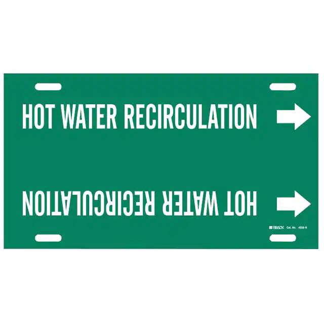 This is manufactured by Brady Corporation. The manufacturer part number is 4336-H. Label with a size of 32.00" l x 10.00" w (812.8mm x 254.0mm). The product is rohs3 compliant. It is shipped in bulk. It has a classic white legend, green background colour. The product brady®, is a highly preferred choice for users. The product is made from highly stable and reliable plastic. In addition, it is reach unaffected. Its typical moisture sensitivity level is not applicable. A bespoke label is a hot water recirculation label. Moreover, it corresponds to 4336, a base product number of the product. It has a long 4 weeks standard lead time.