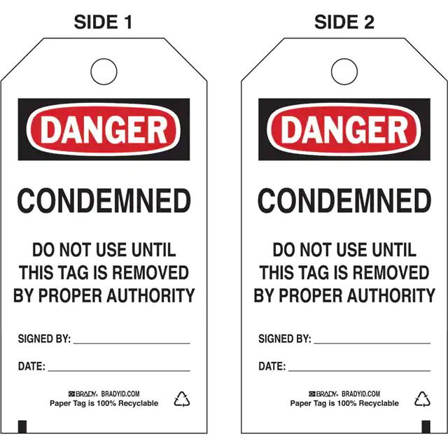 This is manufactured by Brady Corporation. The manufacturer part number is 47321. Label with a size of 5.75" l x 3.00" w (146.0mm x 76.2mm). The product is not applicable. It is shipped in bulk. It has a classic black and red legend, white background colour. The product brady®, is a highly preferred choice for users. The product is made from highly stable and reliable paper. In addition, it is reach unaffected. Its typical moisture sensitivity level is not applicable. A bespoke label is a danger. condemned do not use until this tag is removed by proper authority signed by. date. label. The product is suitable for use with danger. It has a long 4 weeks standard lead time.