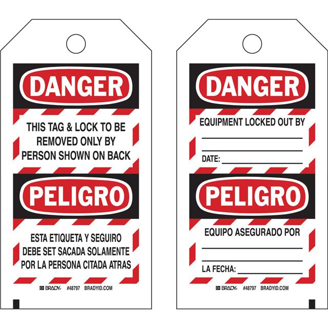 This is manufactured by Brady Corporation. The manufacturer part number is 48797. Label with a size of 5.75" l x 3.00" w (146.0mm x 76.2mm). The product is not applicable. It is shipped in bulk. It has a classic black and red legend, white background colour. The product brady®, is a highly preferred choice for users. The product is made from highly stable and reliable polyester. In addition, it is reach unaffected. Its typical moisture sensitivity level is not applicable. A bespoke label is a this tag & lock out removed only by person shown on back esta etiqueta y seguro, equipment locked out by equipo asegurado por label. It has a long 4 weeks standard lead time.
