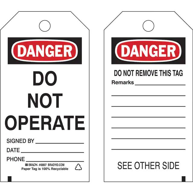 This is manufactured by Brady Corporation. The manufacturer part number is 48807. Label with a size of 5.75" l x 3.00" w (146.0mm x 76.2mm). The product is not applicable. It is shipped in bulk. It has a classic black and red legend, white background colour. The product brady®, is a highly preferred choice for users. The product is made from highly stable and reliable paper. In addition, it is reach unaffected. Its typical moisture sensitivity level is not applicable. A bespoke label is a danger. do not operate signed by. date. label. The product is suitable for use with danger. It has a long 4 weeks standard lead time.