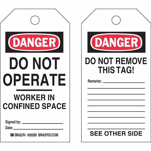 This is manufactured by Brady Corporation. The manufacturer part number is 50290. Label with a size of 5.75" l x 3.00" w (146.0mm x 76.2mm). The product is not applicable. It is shipped in bulk. It has a classic black and red legend, white background colour. The product brady®, is a highly preferred choice for users. The product is made from highly stable and reliable polyester. In addition, it is reach unaffected. Its typical moisture sensitivity level is not applicable. A bespoke label is a danger. do not operate worker in confined space signed by. date. label. The product is suitable for use with danger. It has a long 4 weeks standard lead time.