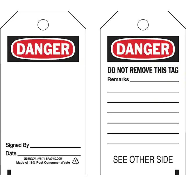 This is manufactured by Brady Corporation. The manufacturer part number is 76171. Label with a size of 5.75" l x 3.00" w (146.0mm x 76.2mm). The product is rohs3 compliant. It is shipped in bulk. It has a classic black and red legend, white background colour. The product brady®, is a highly preferred choice for users. The product is made from highly stable and reliable polyester. In addition, it is reach unaffected. Its typical moisture sensitivity level is not applicable. A bespoke label is a danger. signed by. date. label. The product is suitable for use with danger. It has a long 4 weeks standard lead time.