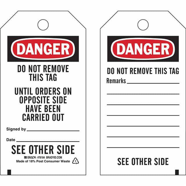 This is manufactured by Brady Corporation. The manufacturer part number is 76184. Label with a size of 5.75" l x 3.00" w (146.0mm x 76.2mm). The product is not applicable. It is shipped in bulk. It has a classic black and red legend, white background colour. The product brady®, is a highly preferred choice for users. The product is made from highly stable and reliable polyester. In addition, it is reach unaffected. Its typical moisture sensitivity level is not applicable. A bespoke label is a danger. do not remove this tag until orders on the opposite side have been carried out signed by. date. label. The product is suitable for use with danger. It has a long 4 weeks standard lead time.