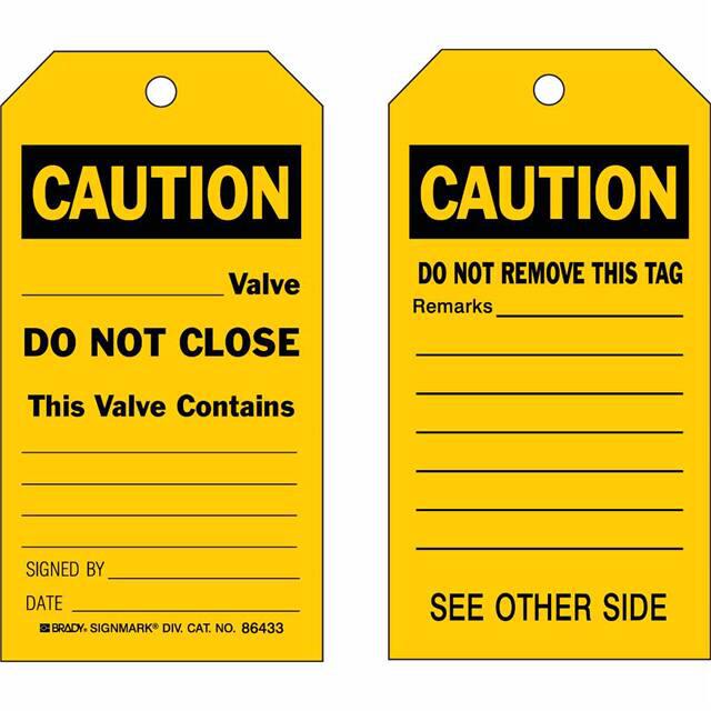 This is manufactured by Brady Corporation. The manufacturer part number is 86433. Label with a size of 5.75" l x 3.00" w (146.0mm x 76.2mm). The product is rohs3 compliant. It is shipped in bulk. It has a classic black legend, yellow background colour. The product brady®, is a highly preferred choice for users. The product is made from highly stable and reliable polyester. In addition, it is reach unaffected. Its typical moisture sensitivity level is not applicable. A bespoke label is a caution. valve do not close this valve contains. signed by. date. label. The product is suitable for use with caution. It has a long 4 weeks standard lead time.