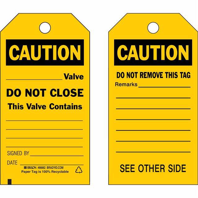 This is manufactured by Brady Corporation. The manufacturer part number is 86662. Label with a size of 5.75" l x 3.00" w (146.0mm x 76.2mm). The product is not applicable. It is shipped in bulk. It has a classic black legend, yellow background colour. The product brady®, is a highly preferred choice for users. The product is made from highly stable and reliable paper. In addition, it is reach unaffected. Its typical moisture sensitivity level is not applicable. A bespoke label is a caution. valve do not close this valve contains. signed by. date. label. The product is suitable for use with caution. It has a long 4 weeks standard lead time.