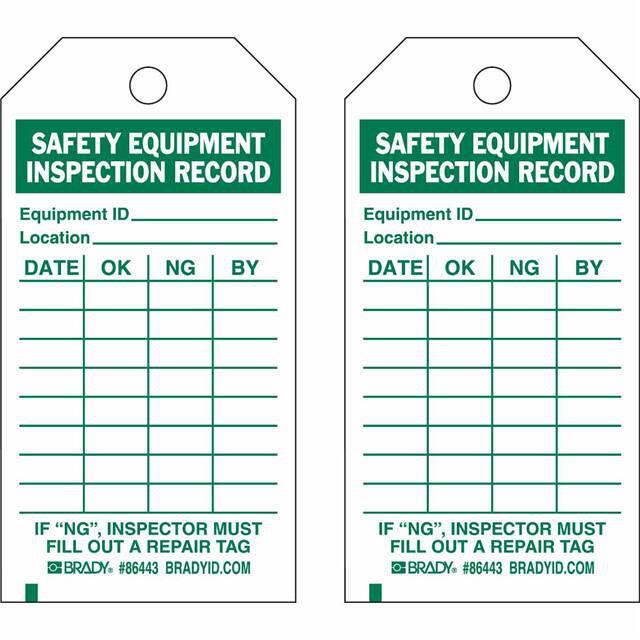 This is manufactured by Brady Corporation. The manufacturer part number is 86667. Label with a size of 5.75" l x 3.00" w (146.0mm x 76.2mm). The product is not applicable. It is shipped in bulk. It has a classic green legend, white background colour. The product brady®, is a highly preferred choice for users. The product is made from highly stable and reliable paper. In addition, it is reach unaffected. Its typical moisture sensitivity level is not applicable. A bespoke label is a safety equipment inspection record. equipment id. location label. It has a long 4 weeks standard lead time.
