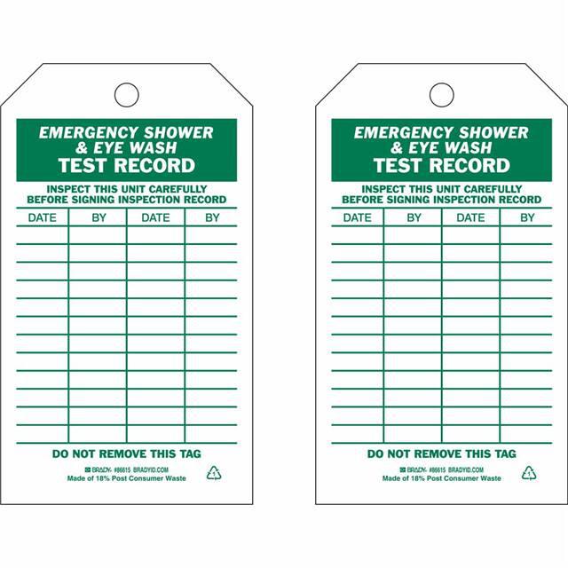 This is manufactured by Brady Corporation. The manufacturer part number is 86670. Label with a size of 5.75" l x 3.00" w (146.0mm x 76.2mm). The product is rohs3 compliant. It is shipped in bulk. It has a classic green legend, white background colour. The product brady®, is a highly preferred choice for users. The product is made from highly stable and reliable paper. In addition, it is reach unaffected. Its typical moisture sensitivity level is not applicable. A bespoke label is a emergency shower & eyewash test record. inspect this unit carefully before signing inspection record date. by. date. by. label. It has a long 4 weeks standard lead time.