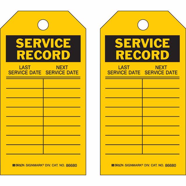 This is manufactured by Brady Corporation. The manufacturer part number is 86680. Label with a size of 5.75" l x 3.00" w (146.0mm x 76.2mm). The product is not applicable. It is shipped in bulk. It has a classic black legend, yellow background colour. The product brady®, is a highly preferred choice for users. The product is made from highly stable and reliable paper. In addition, it is reach unaffected. Its typical moisture sensitivity level is not applicable. A bespoke label is a service record. last service date. next service date. label. It has a long 4 weeks standard lead time.