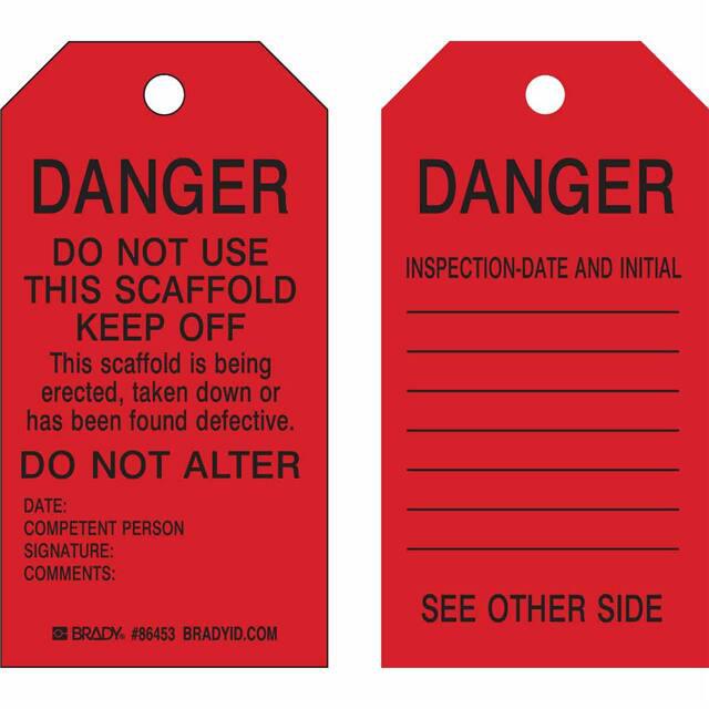 This is manufactured by Brady Corporation. The manufacturer part number is 86683. Label with a size of 5.75" l x 3.00" w (146.0mm x 76.2mm). The product is not applicable. It is shipped in bulk. It has a classic black legend, red background colour. The product brady®, is a highly preferred choice for users. The product is made from highly stable and reliable paper. In addition, it is reach unaffected. Its typical moisture sensitivity level is not applicable. A bespoke label is a danger. do not use this scaffold keep off this scaffold is being erected, taken down or has been found defective do not alter … label. The product is suitable for use with danger. It has a long 4 weeks standard lead time.