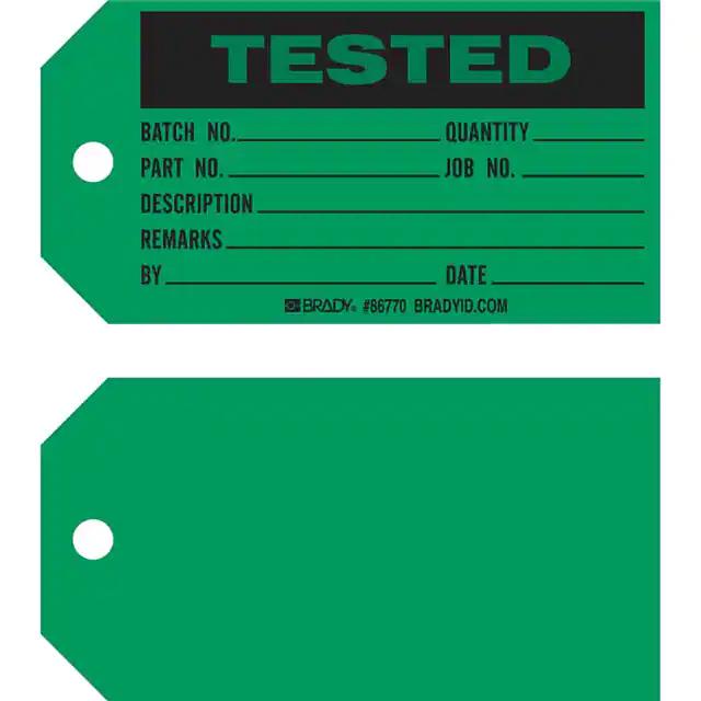 This is manufactured by Brady Corporation. The manufacturer part number is 86770. Label with a size of 5.75" l x 3.00" w (146.0mm x 76.2mm). The product is not applicable. It is assigned with possible HTSUS value of 4821.90.4000. It is shipped in bulk. It has a classic black legend, green background colour. The product brady®, is a highly preferred choice for users. The product is made from highly stable and reliable paper. In addition, it is reach unaffected. Its typical moisture sensitivity level is not applicable. A bespoke label is a tested. batch no. quantity. part no. job no. description. remarks. by. date label. It has a long 4 weeks standard lead time. The product is designated with the ear99 code number