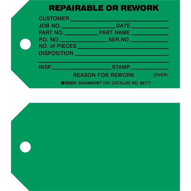 This is manufactured by Brady Corporation. The manufacturer part number is 86777. Label with a size of 5.75" l x 3.00" w (146.0mm x 76.2mm). The product is not applicable. It is shipped in bulk. It has a classic black legend, green background colour. The product brady®, is a highly preferred choice for users. The product is made from highly stable and reliable paper. In addition, it is reach unaffected. Its typical moisture sensitivity level is not applicable. A bespoke label is a repairable or rework label. It has a long 4 weeks standard lead time.