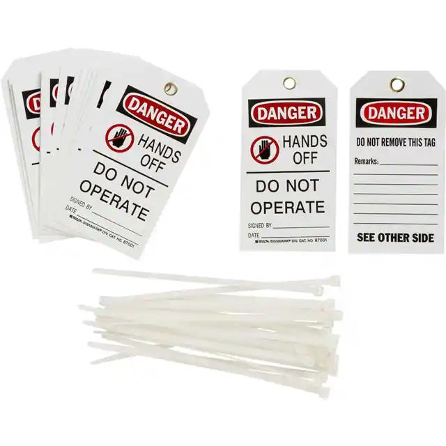 This is manufactured by Brady Corporation. The manufacturer part number is 87001. Label with a size of 5.75" l x 3.00" w (146.0mm x 76.2mm). The product is rohs3 compliant. It is shipped in bulk. It has a classic black and red legend, white background colour. The product brady®, is a highly preferred choice for users. The product is made from highly stable and reliable polyester. In addition, it is reach unaffected. Its typical moisture sensitivity level is not applicable. A bespoke label is a danger. hands off do not operate signed by. date. label. The product is suitable for use with danger. It has a long 4 weeks standard lead time.