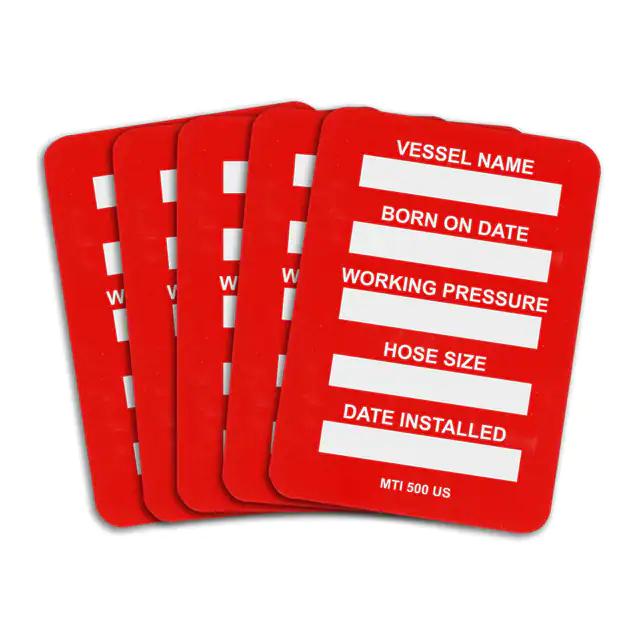 This is manufactured by Brady Corporation. The manufacturer part number is MIC-MTI 500. Label with a size of 1.75" l x 1.25" w (44.5mm x 31.8mm). The product is rohs3 compliant. It is shipped in bulk. It has a classic white legend, red background colour. The product brady®, is a highly preferred choice for users. The product is made from highly stable and reliable plastic. In addition, it is reach unaffected. Its typical moisture sensitivity level is not applicable. A bespoke label is a vessel name. born on date. working pressure. hose size. date installed. label. Moreover, it corresponds to mic, a base product number of the product. It has a long 4 weeks standard lead time.
