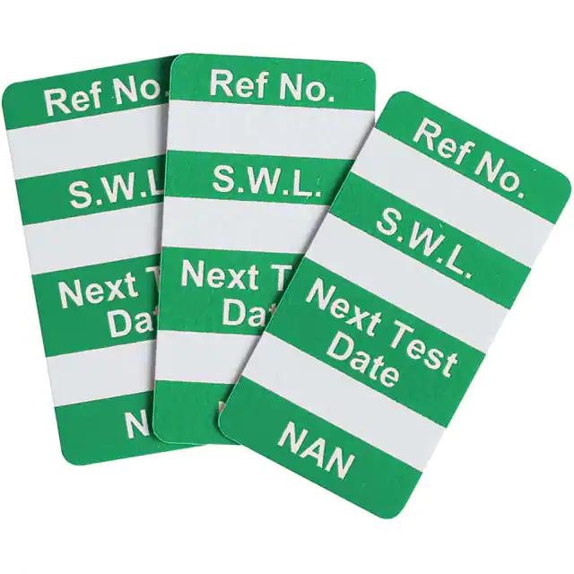 This is manufactured by Brady Corporation. The manufacturer part number is NAN-NAN GREEN. Label with a size of 1.33" l x 0.70" w (33.7mm x 17.8mm). The product is rohs3 compliant. It is shipped in bulk. It has a classic green legend, white background colour. The product brady®, is a highly preferred choice for users. The product is made from highly stable and reliable plastic. In addition, it is reach unaffected. Its typical moisture sensitivity level is not applicable. A bespoke label is a ref no. s.w.l. next test date. nan label. Moreover, it corresponds to nan-nan, a base product number of the product. It has a long 4 weeks standard lead time.
