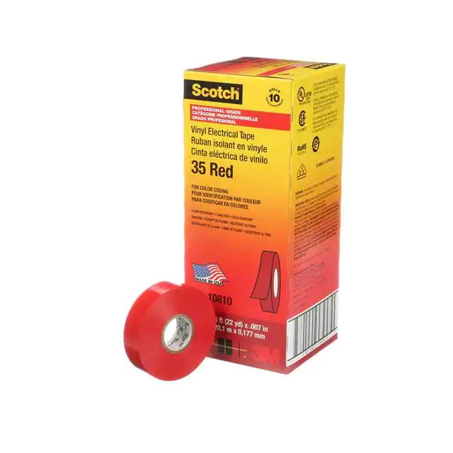 This is manufactured by 3M. The manufacturer part number is 35 RED (3/4"X66'). The product is a splendid rubber adhesive. It is assigned with possible HTSUS value of 3919.10.2020. The product is rohs3 compliant. It is 0.0070" (7.0 mils, 0.178mm) thick. Furthermore, the product is 0.75" (19.05mm) 3/4" wide. This highly innovate tape is a electrical with effective applications. The product is highly reliable with a long-lasting period of 60 months. The product's typical Applications include uses in color coding. Its warranty starts from date of manufacture. The product's typical temperature range incudes 176°f (80°c). It is shipped in bulk. The product backing is made from an excellent pvc (poly vinyl chloride). Its typical moisture sensitivity level is not applicable. It offers storage features at 50°f ~ 80°f (10°c ~ 27°c). Its accurate length is 66' (20.1m) 22 yds. It has a long 6 weeks standard lead time. It has a classic red colour. The product scotch® 35, is a highly preferred choice for users. The product is designated with the ear99 code number